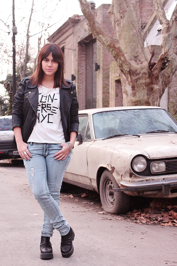 Hoy les muestro el outfit que elegí para una tarde de sábado. Es cómodo y simple. Usé una campera biker que es increíble y pienso usarla siempre!