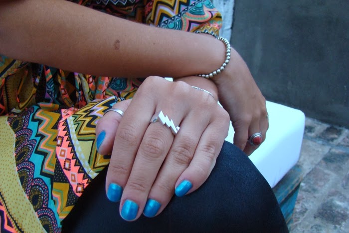 Estrene una túnica de la India que compre en Pinamar y mis amigas me decían que era muy Jamiroquai! Además, un anillo de plata con forma de rayo.