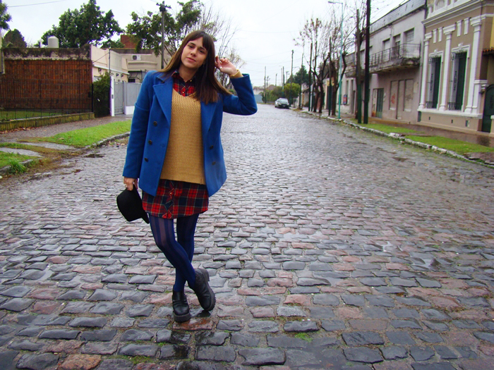 Además, me animé a usar unas medias azules, ¡basta de las típicas negras! Hay mil diseños.
