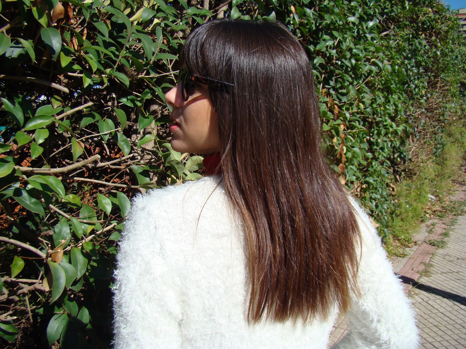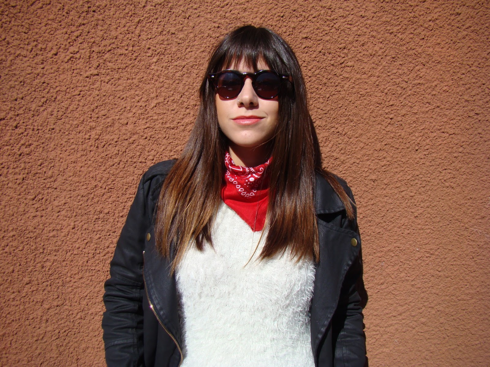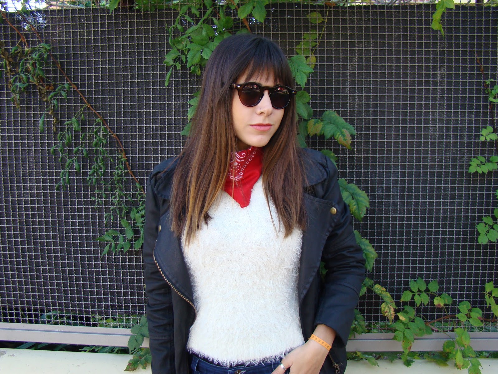 ¡Hola a todos! Luego de la «confesión» de ayer, hoy les muestro un outfit con una prenda que me encantó incorporar a mi vestidor: el sweater peludo. Es taaaan calentito que pienso usarlo en los días más helados. Lo combiné con una chaqueta de gabardina, jeans y botas. Como accesorios, elegí anteojos de marco redondo y un pañuelo comodín que amo.