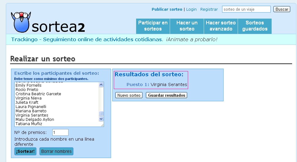 Sorteo realizado en Sortea2