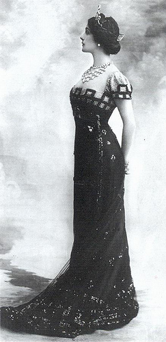 Hacia 1910, la moda para las mujeres empezó a cambiar notablemente. Los vestidos largos no llevaban tanto volumen como antes, el corte de los mismos era más arriba que la cintura (ya se había dejado de usar el corset clásico, ¿se acuerdan?), y se usaban los escotes protagonistas con bordados, encajes y pedrería.