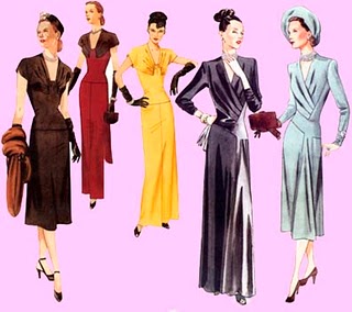 Corrían tiempos de guerra (recuerden que la 2° comenzó en el ’39 y finalizó en el ’45) y las mujeres tuvieron que «amoldarse» a la situación. Las prendas se hacían con el mínimo de tela posible para economizar gastos, algunas se usaban para el día y la noche, el look se militariza, y se apela al uso de accesorios para «renovar» la ropa.