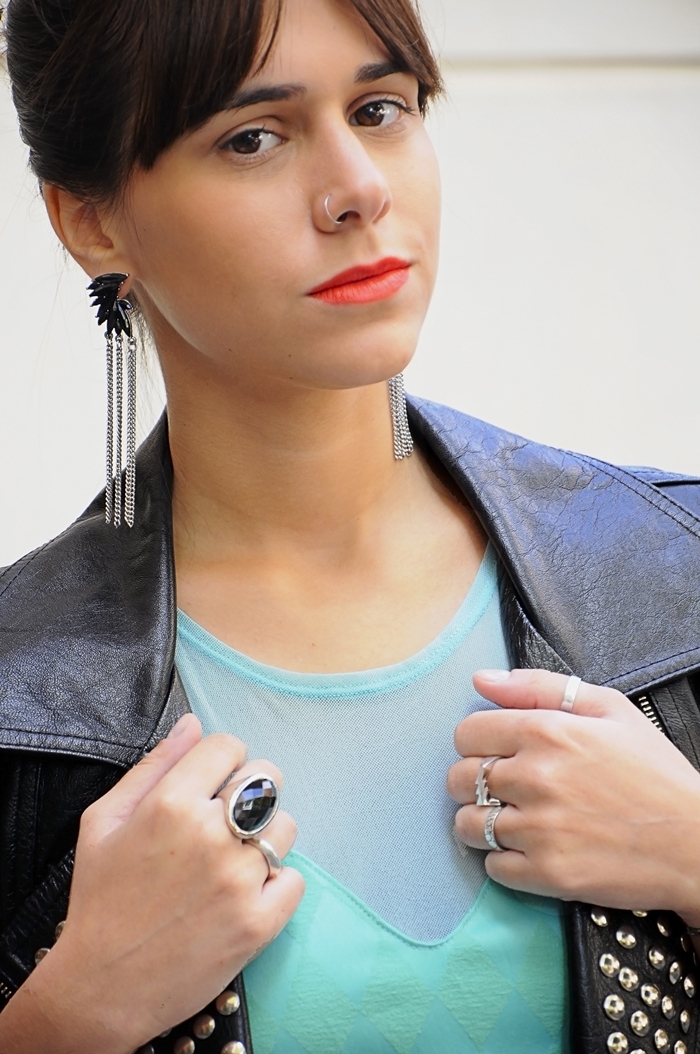 Hoy les muestro un outfit distinto, con un vestido que usé para un casamiento hace unas semanas. Me encanta porque es super versátil y sale de lo común, especialmente por el color. De abrigo usé una campera de cuero con tachas, iba perfecto!