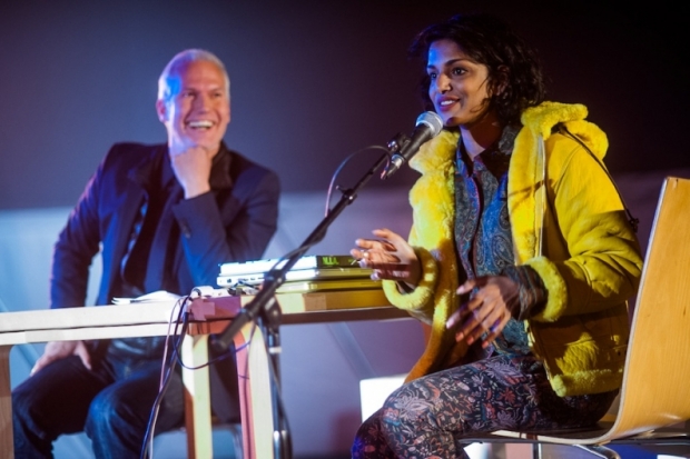 | M.I.A en el MoMA explicando sobre su colaboración. |