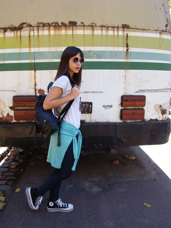 Este es el segundo outfit que armé. Lo complementé con una campera biker como abrigo.