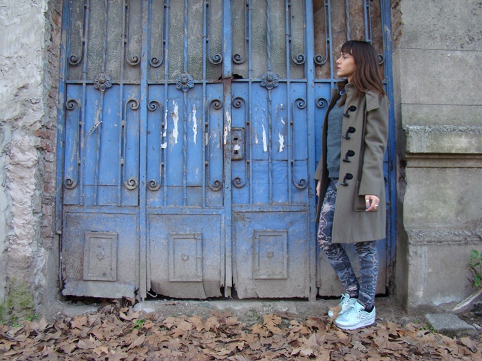 Para la tarde de las fotos, elegí un outfit simple: maxiabrigo, acompañado por un sweater y camisa de jean. Además, decidí usar colores claros en unos pantalones estampados y zapatillas un poco llamativas. ¡Las amo!