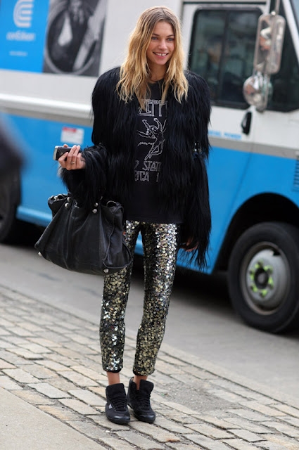 definitivamente los primeros 3 looks son divinos. Sin duda la que + onda tiene es la de los pantalones de lentejuelas y saco de pelos, increible, muuucha onda! besosss Sabi