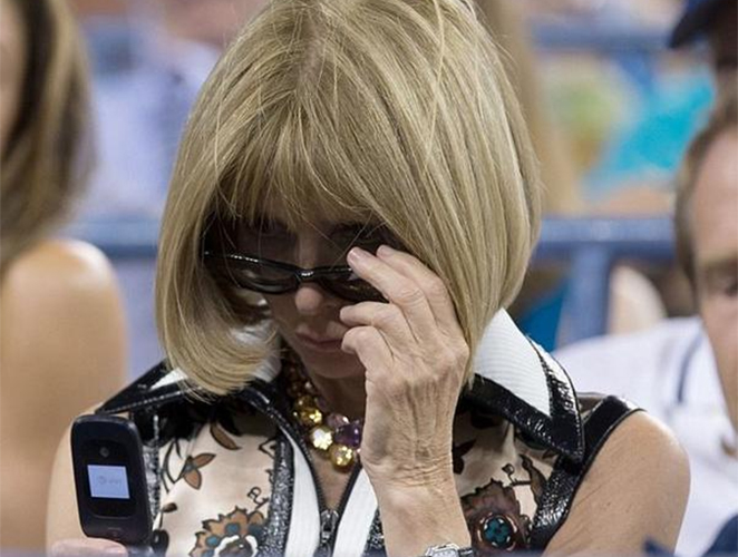 Fue Anna Wintour una de las que primeras usó un teléfono vintage con tapita en el U.S.